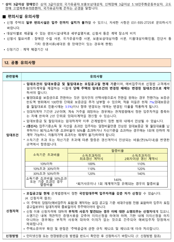 주택형별로 보증과 월임대료가 상이합니다